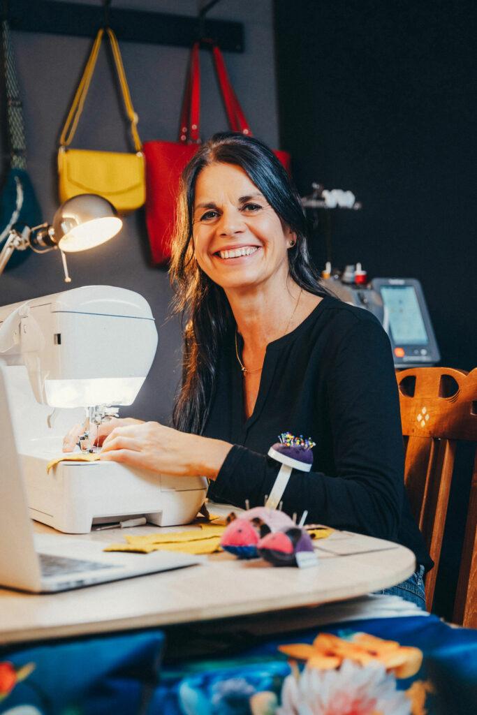 Zwanzig Jahre Büro. Dann ein Sprung ins Ungewisse. Heute schneidert und bestickt sie im Nähatelier „wagnerstrasse“ Taschen, Handtücher, Postkarten und Ideen mit Seele. Handgemacht, einzigartig, echt.